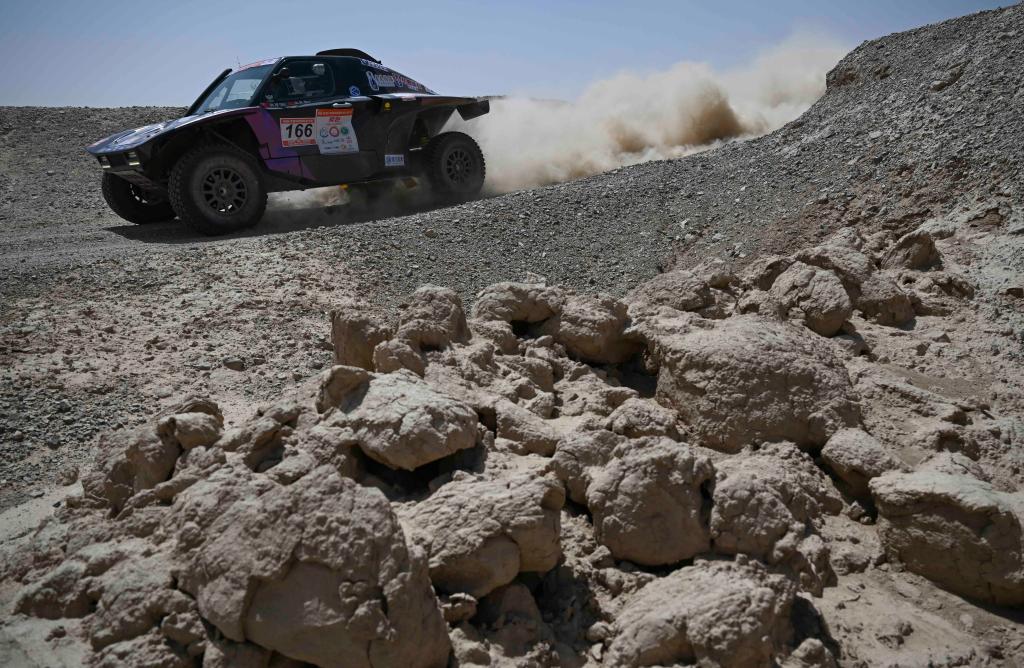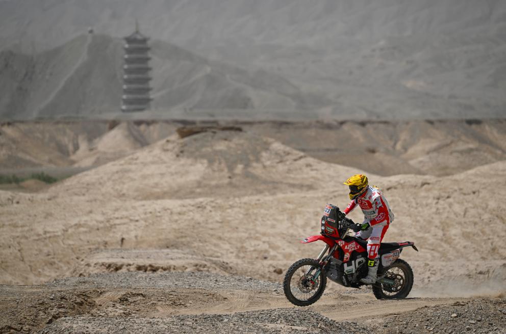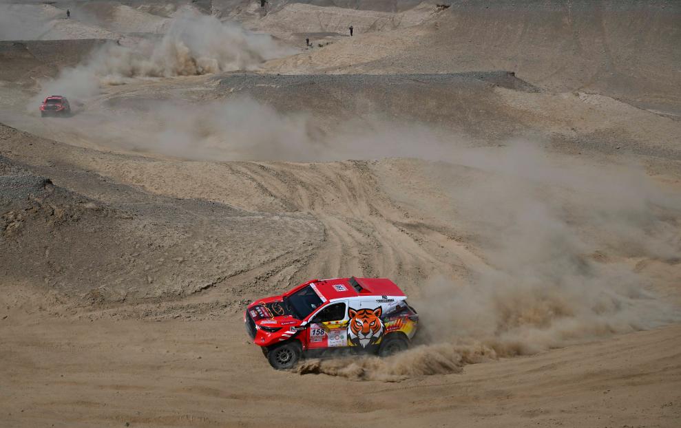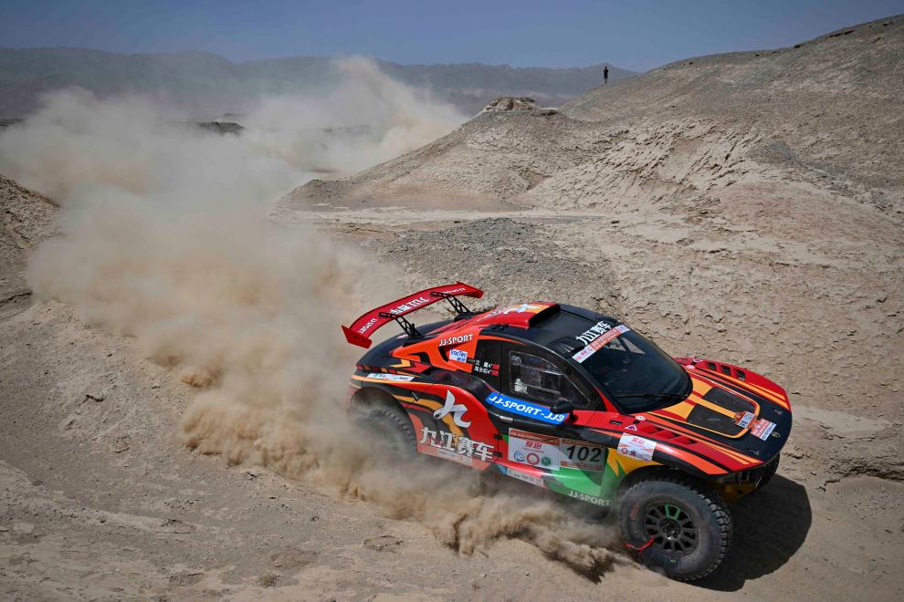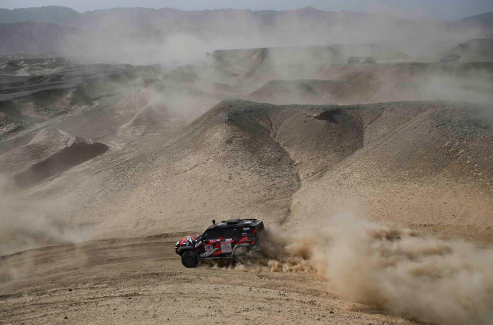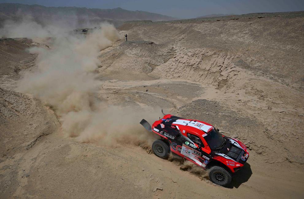 5月20日,新疆八一钢铁车队车手左小兵、领航员连俊杰驾驶赛车在排位赛中。