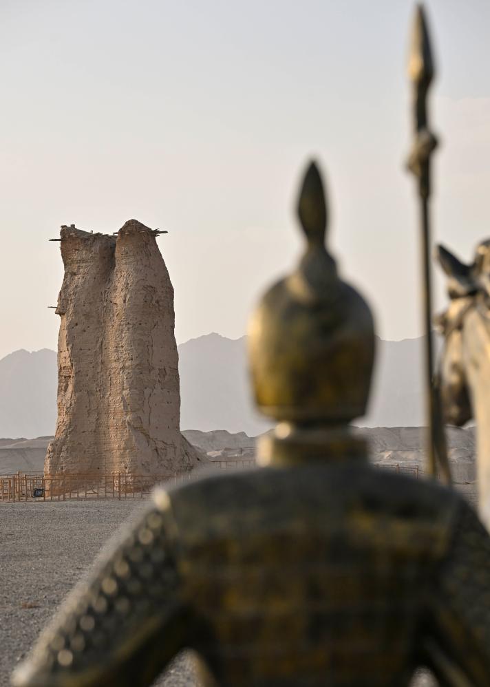 “克孜尔尕哈”意为“红色哨卡”。夕阳下,这座汉代军事设施的夯土墙体被映照得棱角分明,泛着淡淡的金红色。“站在这里,仿佛看到了当年的烽火传讯。”一名游客感慨地说。
