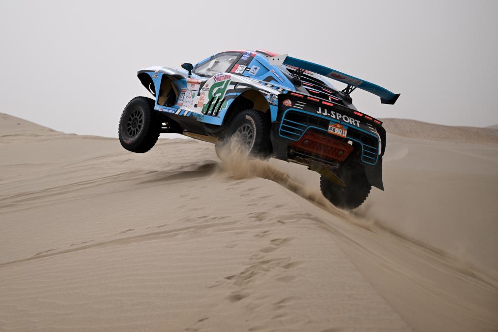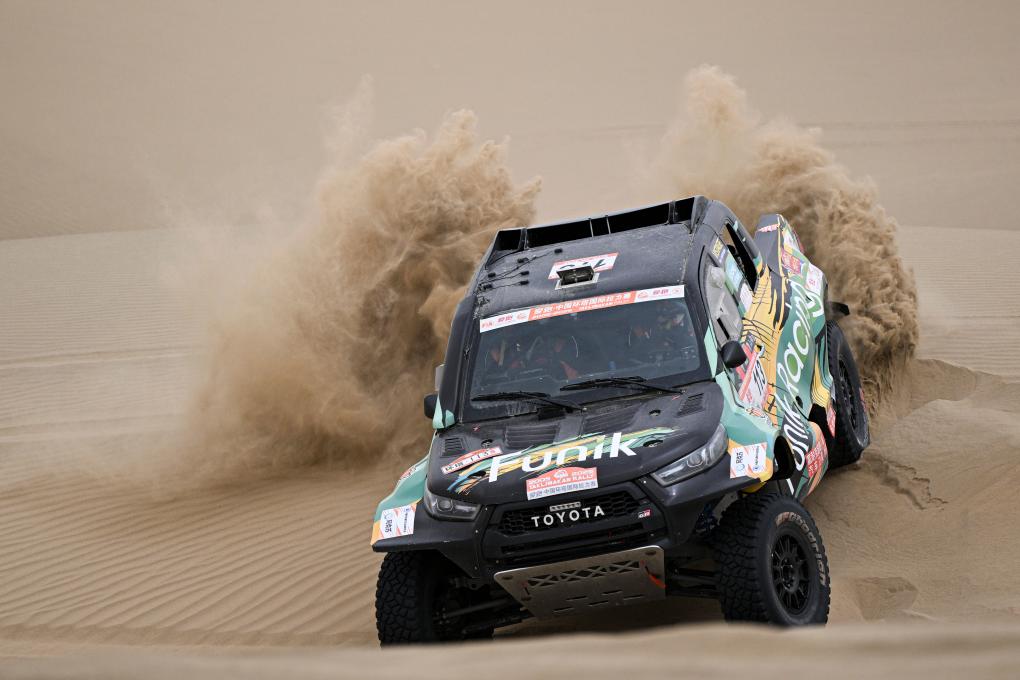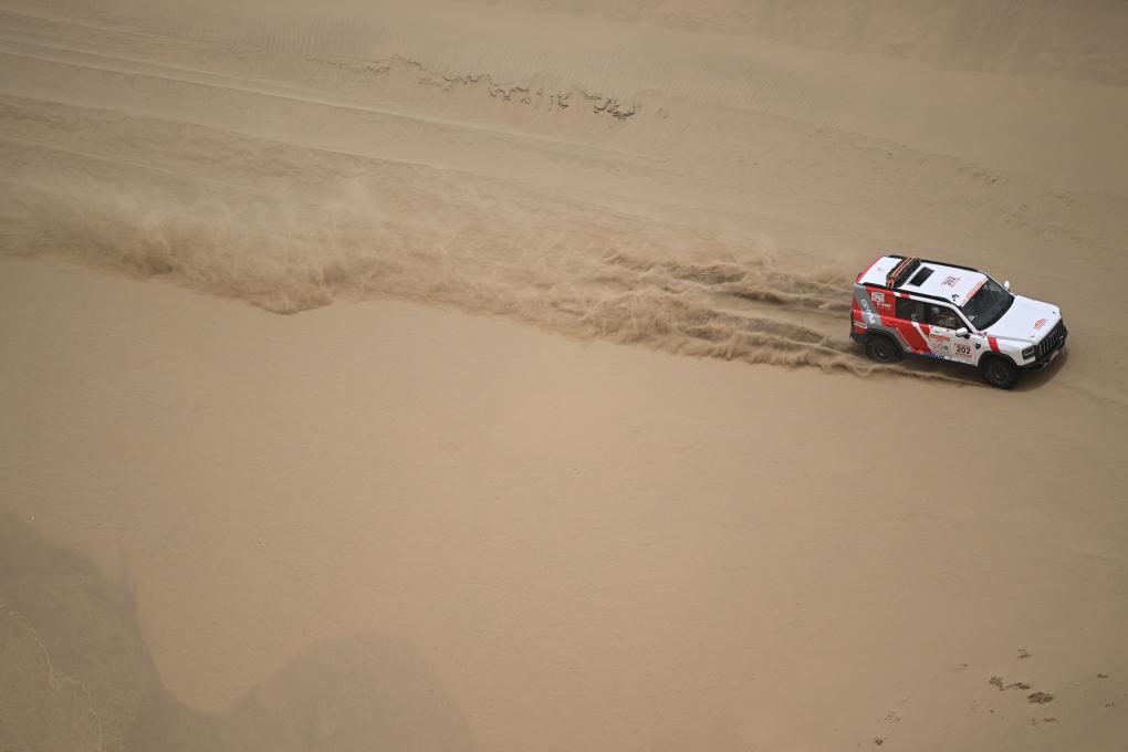 当日,2025中国环塔国际拉力赛第七赛段在新疆喀什地区叶城县进行。该赛段长82公里,以“沙漠 戈壁”的复合地形为特色,是今年最新启用的赛段。新华社记者 辛悦卫 摄