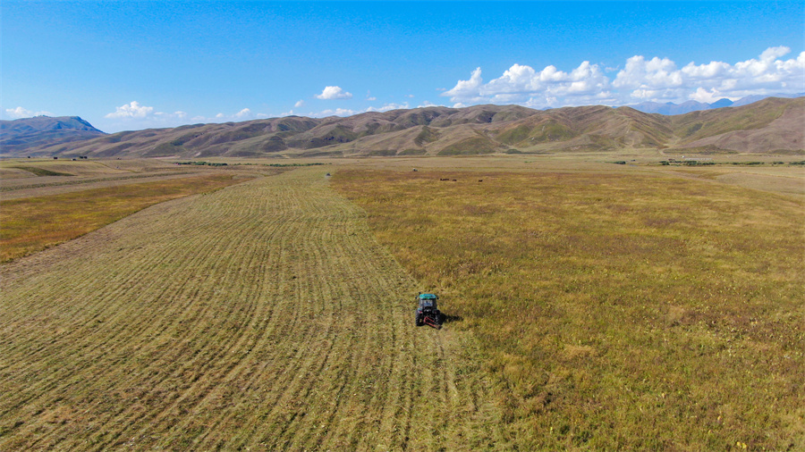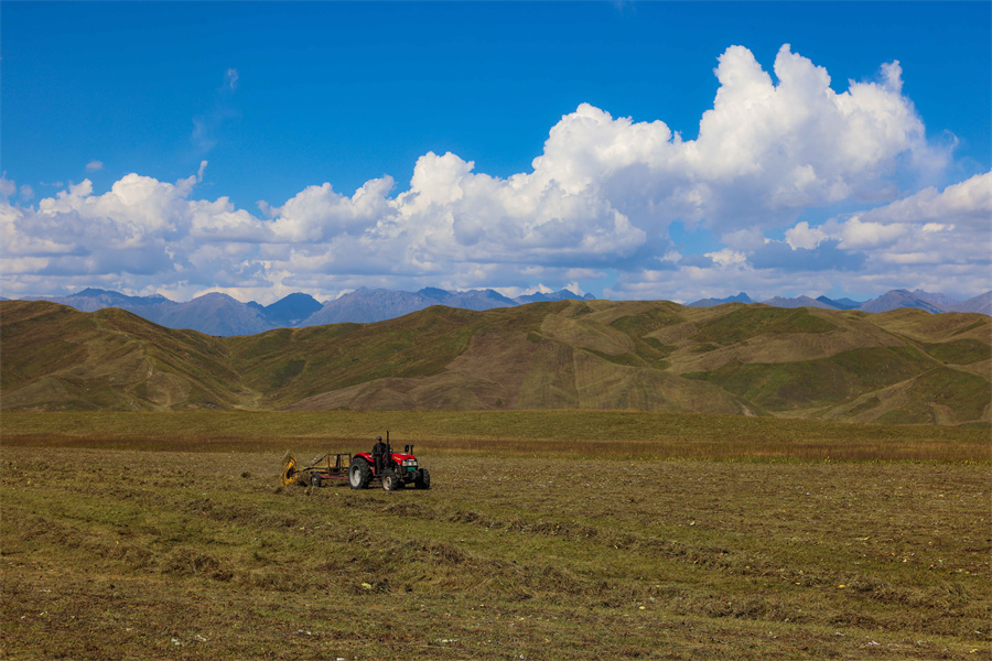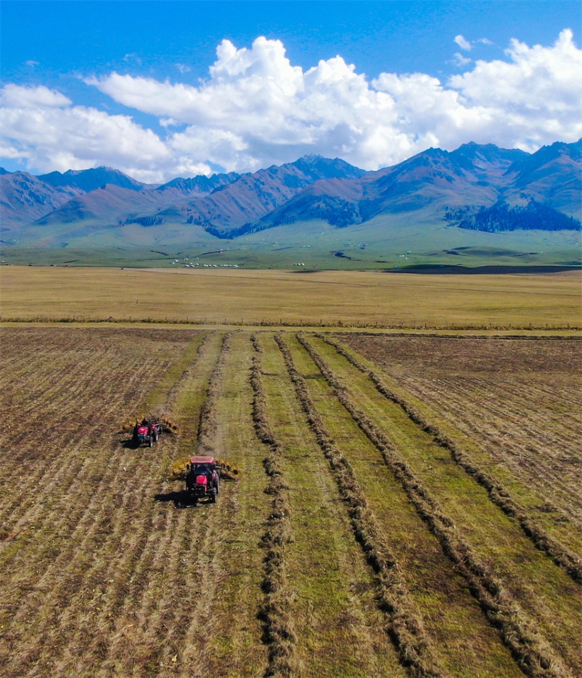 阿吾赞夏牧场牧草迎来一年一度的打草季。