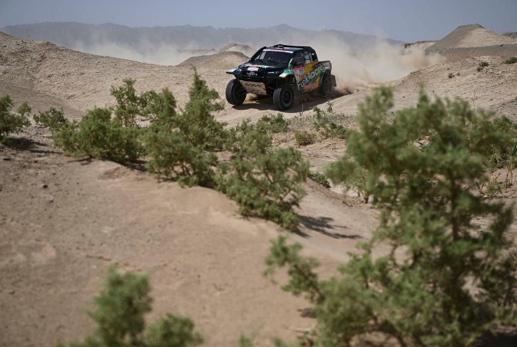 5月20日,龙脉赛车队车手额尼日勒图、领航员贾峻驾驶赛车在排位赛中。
