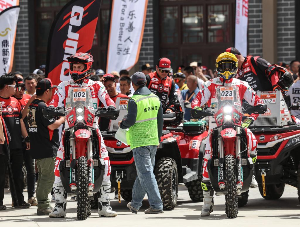5月20日,河北兄弟出品越野车队车手孙志兵、领航员黄圣在发车仪式上。