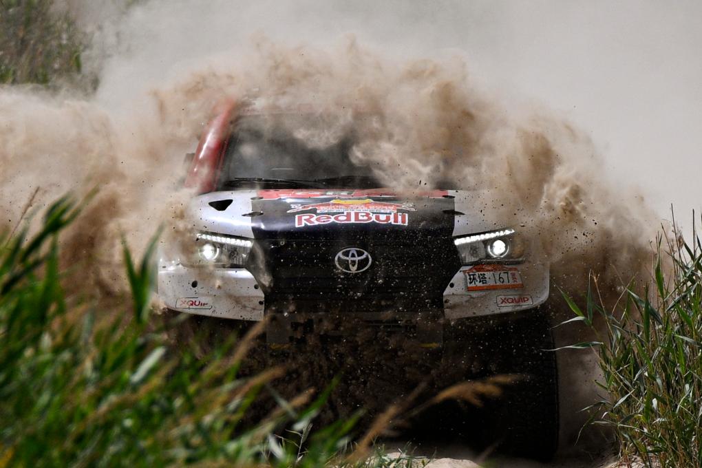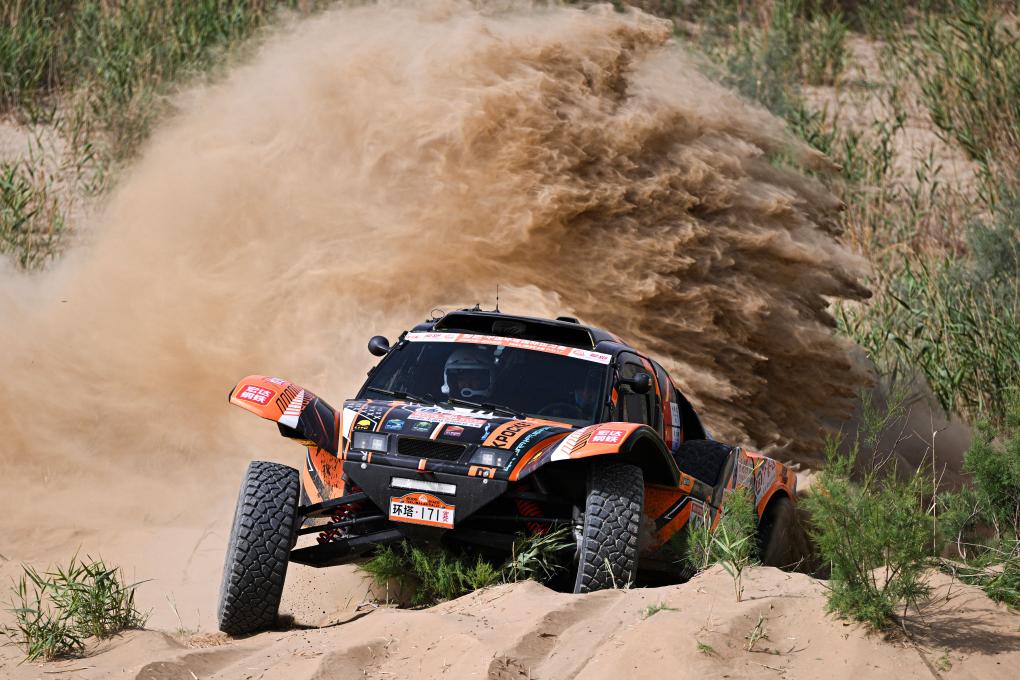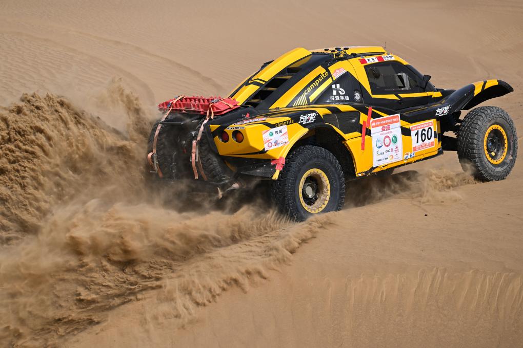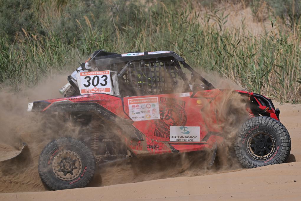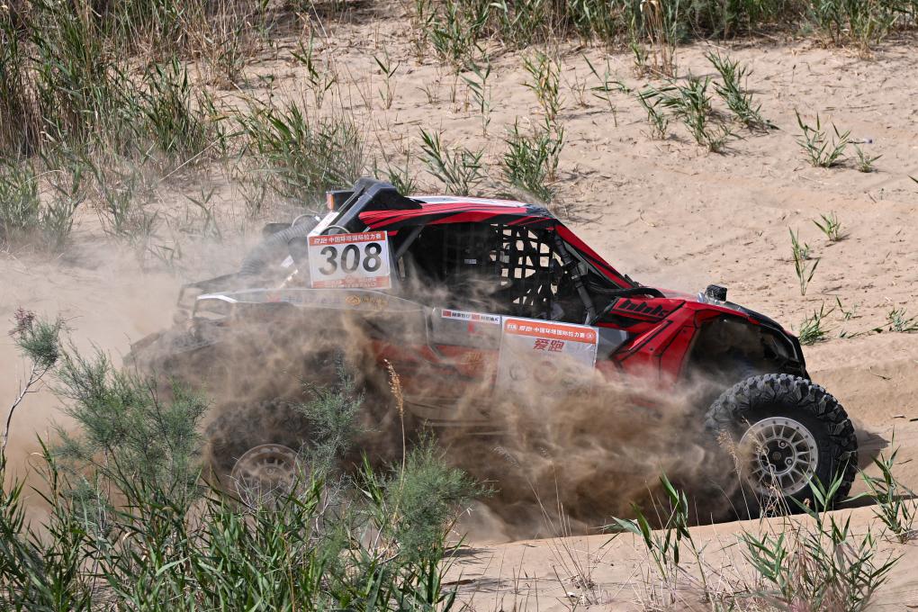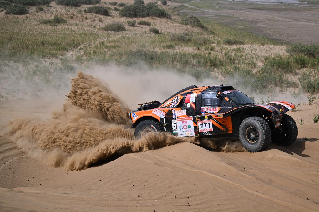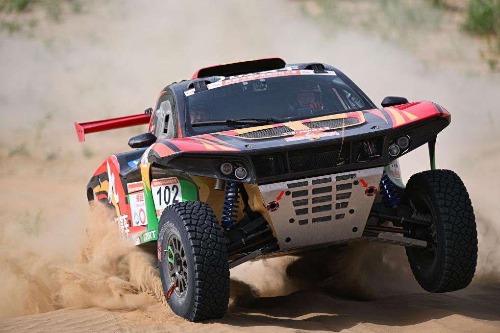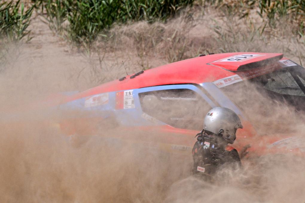 5月27日,甘肃卫视驰越运动赛车队三部车手杨帅、领航员刘元在比赛中。