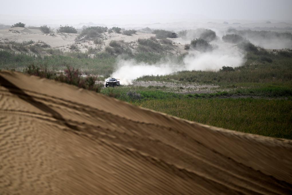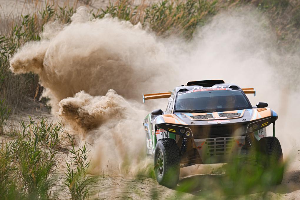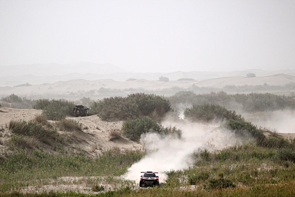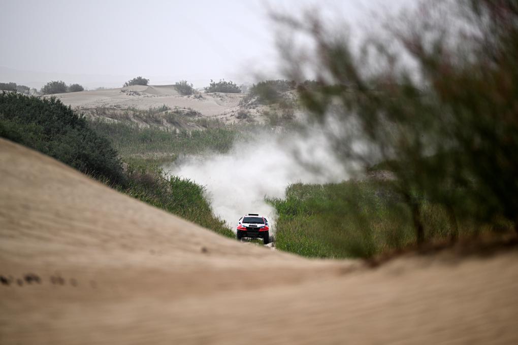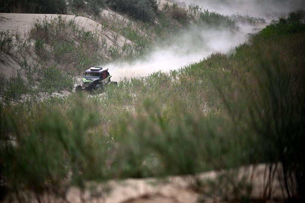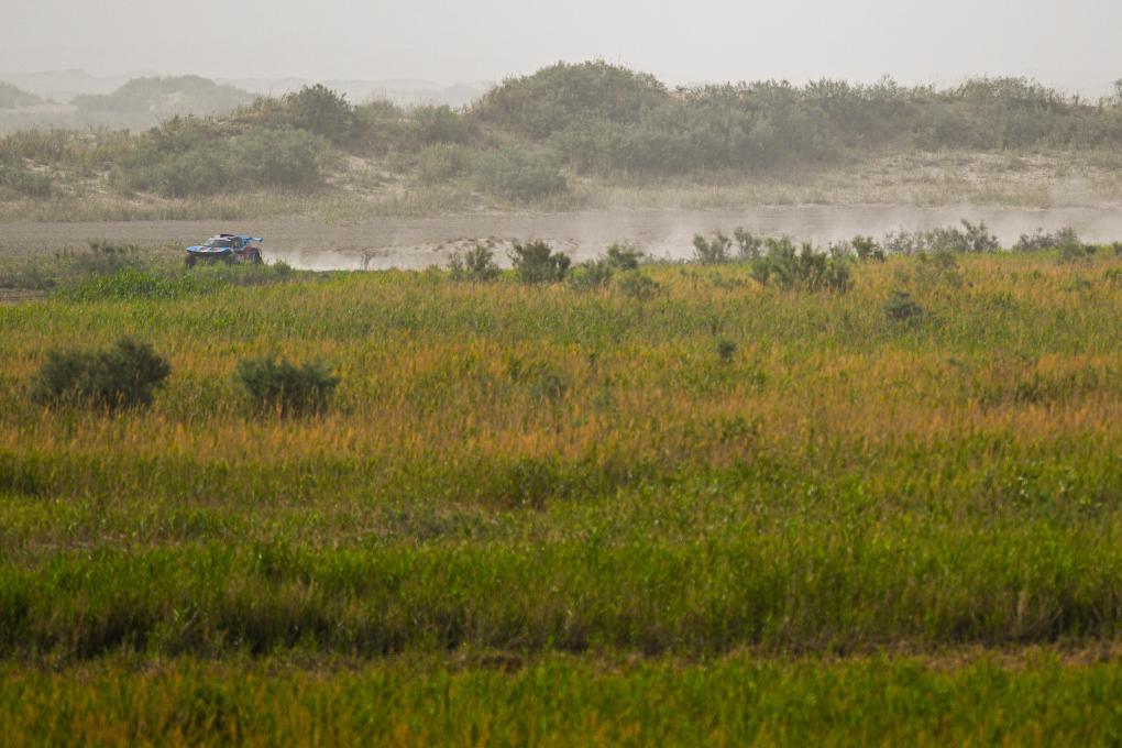 当日,2025中国环塔国际拉力赛第六赛段在新疆和田地区于田县进行。该赛段长达280多公里,沿途湿地、戈壁和沙漠交替出现。 新华社记者 辛悦卫 摄