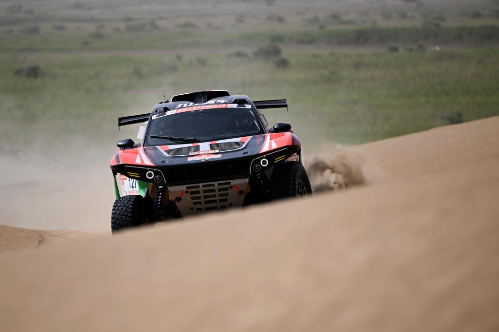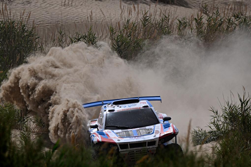 5月27日,零公里润滑油zm-buggyra车队塞舌尔车手阿莉亚·科洛克、法国领航员德洛奈驾驶赛车在比赛中。