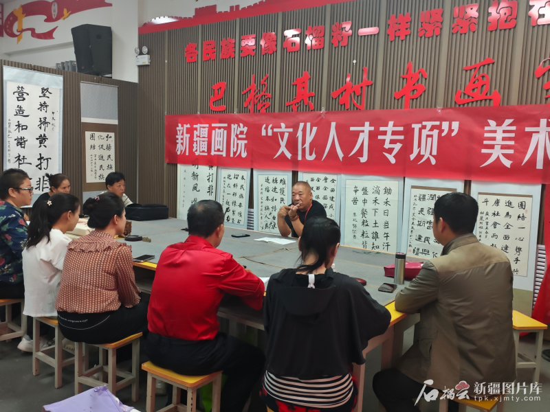 自治区美术书法“石榴籽”文艺小分队在拜城县开展书画培训活动。红梅 摄