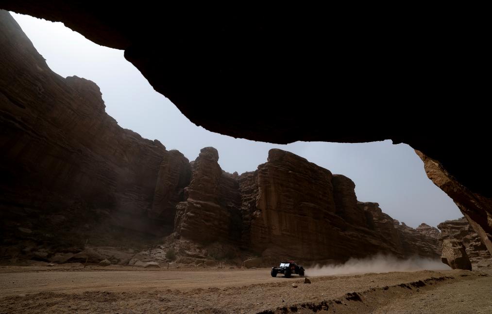 5月21日,零公里润滑油zm-buggyra车队塞舌尔车手阿莉亚·科洛克、法国领航员塞巴斯蒂安·德洛奈驾驶赛车在比赛中。